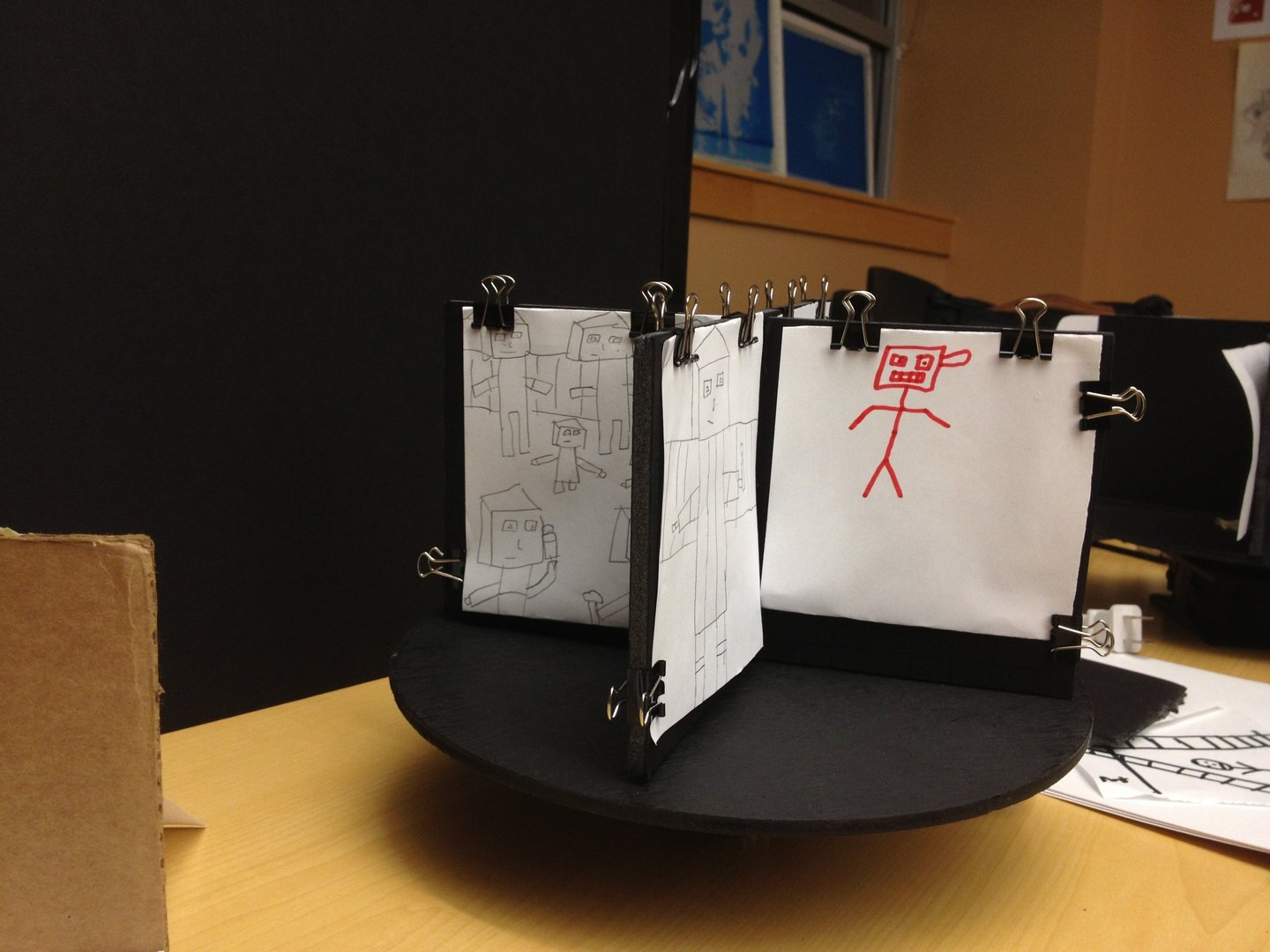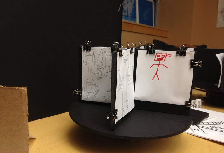 In the workshops, participants built simple film devices from everyday materials. These devices sparked conversations about home and belonging, which led to creating short animated films together.