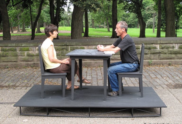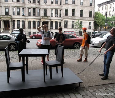 FLC deployed mobile tables and chairs throughout Washington DC, creating pop-up gathering spaces for spontaneous conversations and community dialogue. Passersby both joined the discussions and helped move the installation to new locations.